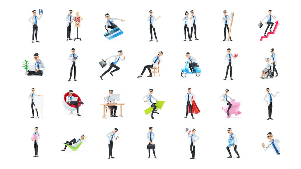 Cartoon Doctor - 45 Poses Illustrations - PNG